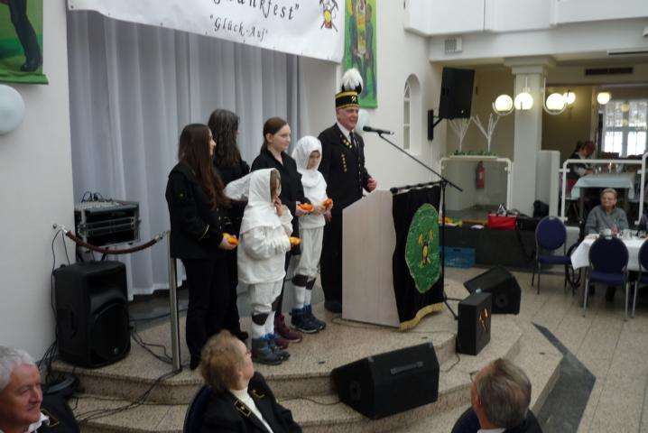 Einige Vereine hatten ihren Nachwuchs in bergmännischer Kleidung mitgebracht. Gerd Hintze lobte die Nachwuchsarbeit und überreichte jedem Kind oder Jugendlichen unter großem Beifall ein Präsent.