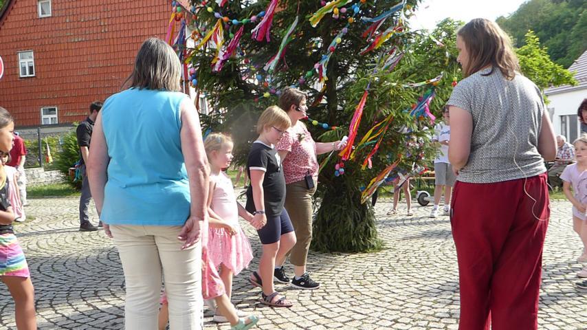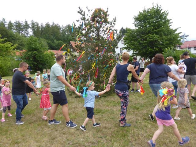 Zu den altbekannten überlieferten Johannislieder wird um den geschmückten Baum getanzt.