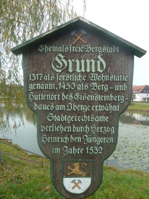 1532: Herzog Heinrich der Jüngere erlässt die erste „Bergfreyheit des Braunschweigischen Fürtenstum“. Damit wird Grund Stadtrechte verliehen. Am Iberg können die Bergleute nach Erz (Eisenerzgewinnung) schürfen. Die eigentliche Urkunde zur Erhebung als Bergstadt verleiht Grund die Stadtrechte. Damit ist der Herzog der Gründer der Siedlung Grund als Bergstadt. Grund ist die älteste der sieben Oberharzer Bergstädte.