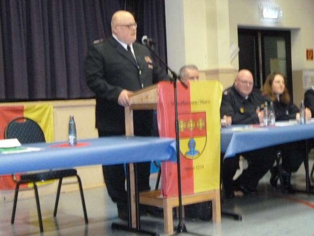 In seinem Gru゚wort berichtet stellvertretender Gemeindebrandmeister Dirk Blanke über die gute Ausbildung, auf die Langzeit-Projekte der Feuerwehr und auf die Ersatzbeschaffung der Einsatzfahrzeuge für die Wehren in Badenhausen und Eisdorf. 161 aktive Mitglieder gehören der öttlichen Wehren in der Gemeinde Bad Grund an. 1039 Einwohner fördern die Feuerwehren. Er stellt weiter fest, dass die Zusammenarbeit der Wehren gut sei.