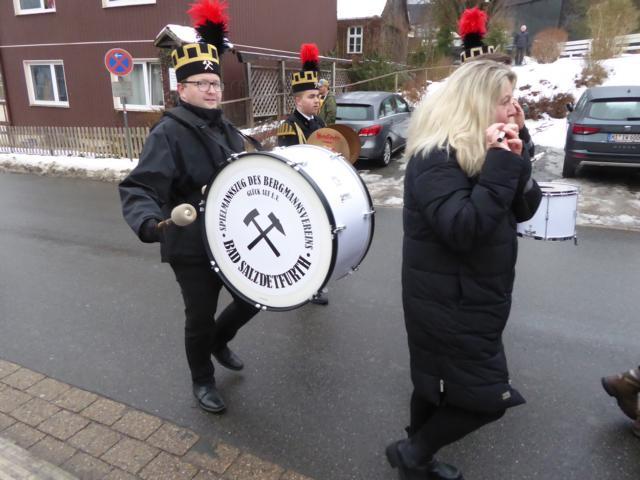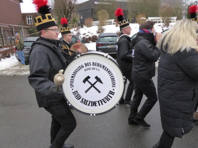 Bad Grund (kip) Nach dem gemeinsamen mit Liedern der Sänger aus Badenhausen/Schwiegershausen umrahmten Gottesdienst zum Bergdankfest mit Pastor Jörg Uwe Pehle nahmen die zahlreichen Fahnenabordnungen mit ihren Berg- und Hüttenvereinen aus nah und fern auf dem Marktplatz und auf dem Hübichweg zur großen Bergparade Aufstellung. Der Spielmannszuges der Bergmannsvereins Bad Salzdetfurth sorgte mit seiner Marschmusik für den richtigen Schritt und Tritt. Den Umzug führte Vorsitzender Gerd Hintze mit dem ausrichtenden Knappenverein Bad Grund und Umgebung nach den Spielleuten an. Durch Bad Grunds Innenstadt führte die farbenfreudige Bergparade über die Straßen Markt und An der Post, Osteroder und Clausthaler Straße zum Atrium. Mit wunderschöne Bergmannstrachten präsentierten sich die Bergleute. Auch einige Einwohner, die einst in die Grube des hiesigen Erzbergwerks eingefahren waren oder sich sonst den Bergleuten verbunden fühlten, schlossen sich dieser Bergparade an. Auch Bürgermeister Patrick Schmidt zählte zu den Umzugsteilnehmern.