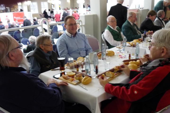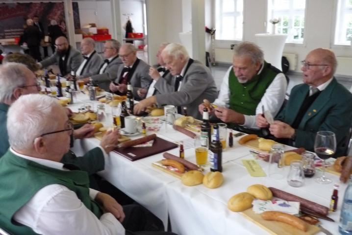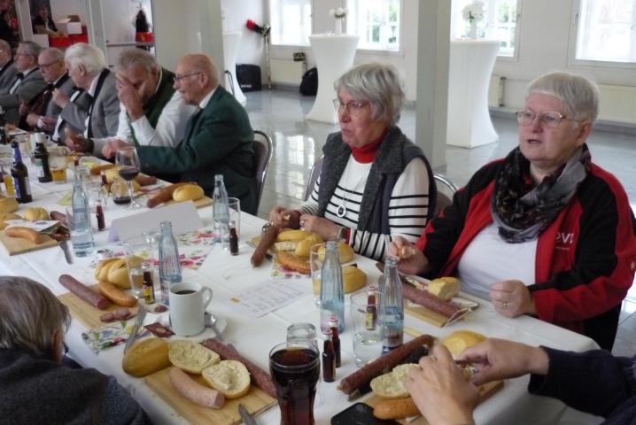 Zum gemütlichen Feuerwehrabend waren weitere Gäste gekommen, sodass Feuerwehrkameraden mit ihren Partnern dicht gedrängt mit den Gästen im Saal der Dorfgemeinschaftsanlage zusammensaßen. Allen mundete die bestellte Wurst- oder Käseplatte. Zufrieden und wohl gelaunt vergingen schnell die weiteren Stunden.